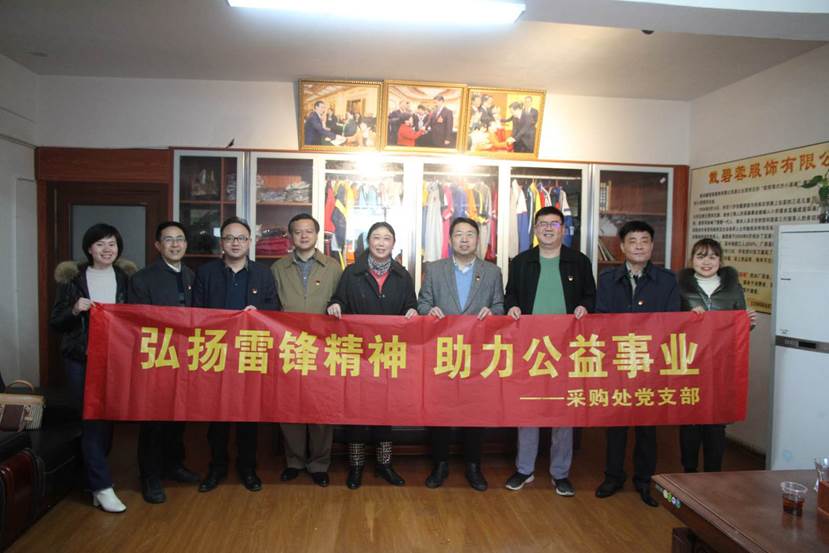 為響應毛主席“向雷鋒同志學習”的偉大號召, 3月4日,支部書記張效軍同志帶領采購處黨支部一行來到株洲市天元區(qū)湖南戴碧蓉服飾有限公司開展“學雷鋒助公益”主題黨日活動。