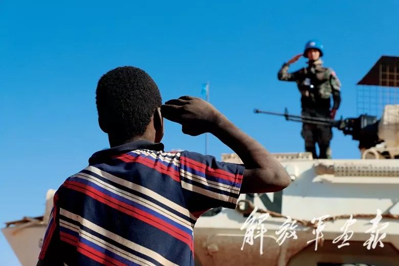 當薩羅拉智再一次看到我們的官兵正在執(zhí)行任務,興奮地用一個“軍禮”向中國軍人致謝,機槍手王俊偉隨即還禮。