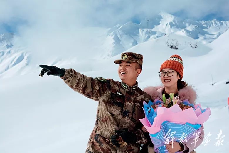 在海拔4900米的神女峰下,戰(zhàn)士歐城也牽著未婚妻的手,面對皚皚雪山許下了愛的誓言。