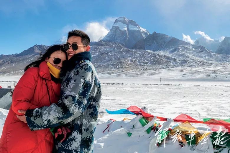 冰冷的高原雪山與張錦源和王梅臉上甜美的笑容形成對比