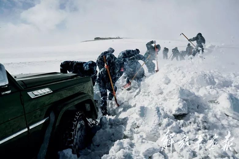 不過要通往高原駐地的路并不那么容易,大雪常年封山,戰(zhàn)友們?yōu)榱擞蛹覍,在寒風刺骨的雪地里奮力鏟雪開路。