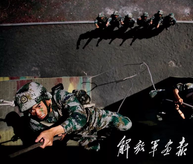 下面這張照片的主體是奮力向上攀巖的士兵,背景則是戰(zhàn)友們的鼓勵,攝影師以一種俯拍的角度記錄了戰(zhàn)友之間的團結精神。