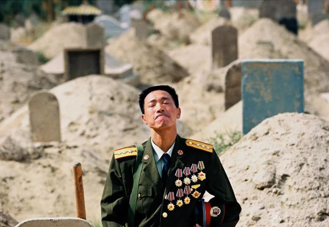 攝影師袁學軍的拍攝角度與人物情緒非常好的進行結合。在英雄模范人物掃墓的過程中,在一種生活化的場景下,抓住人物內心情感,表現(xiàn)一個軍人的真實人性,使得作品十分感人。